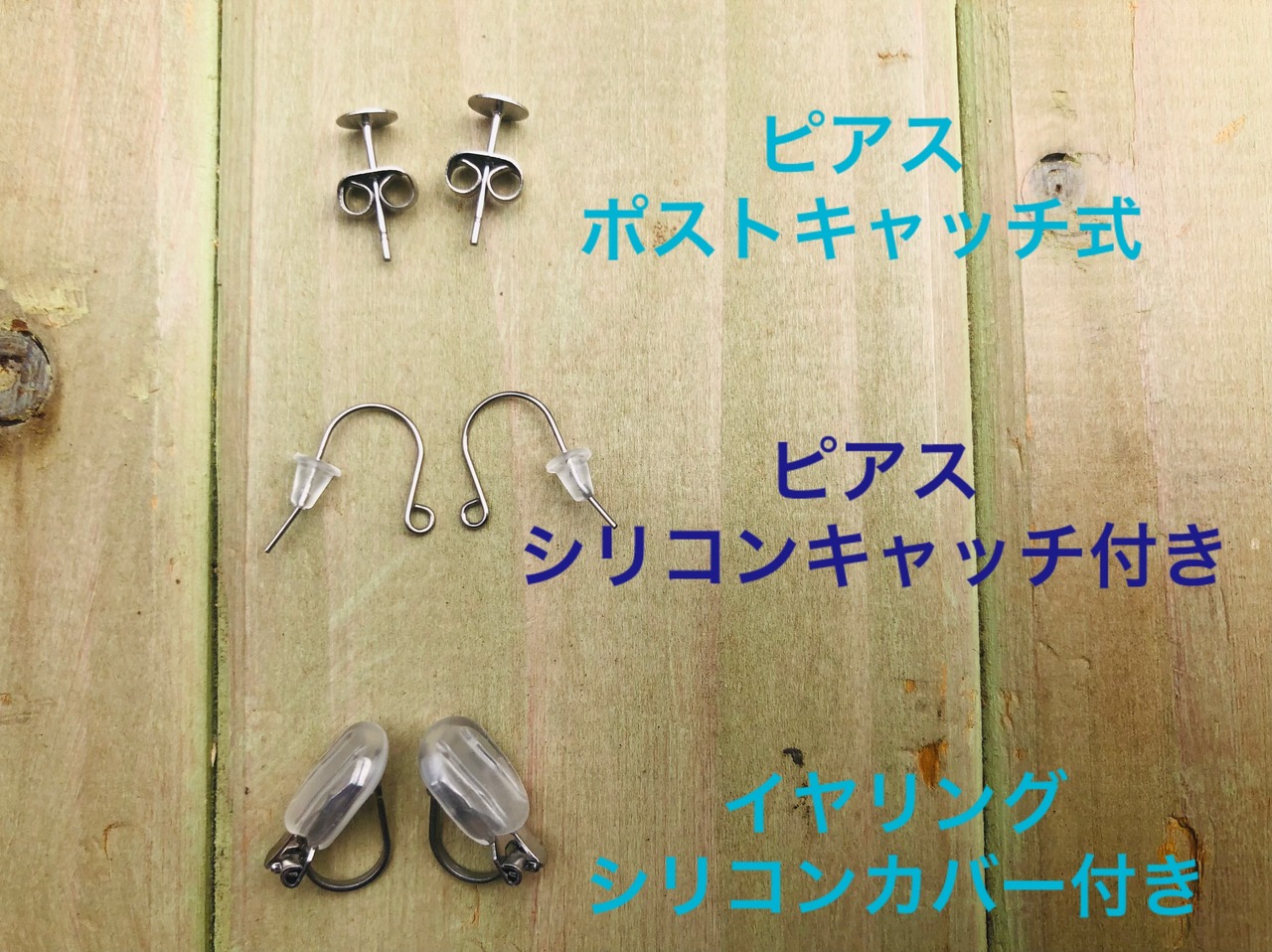 3種類の中からお好きな金具をお選びいただけます。金具は全てサージカルステンレスです。