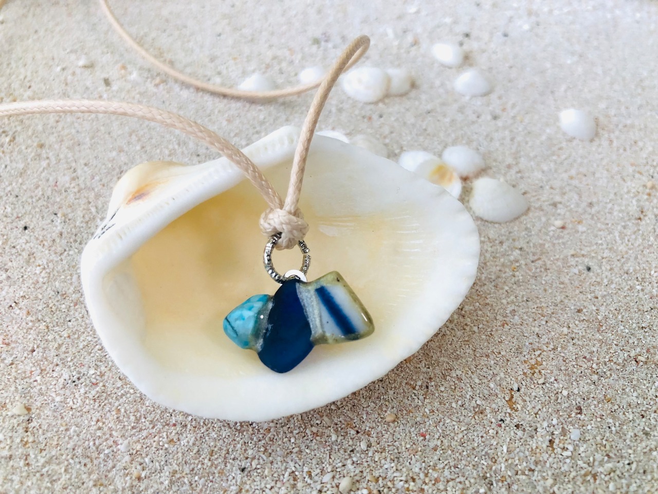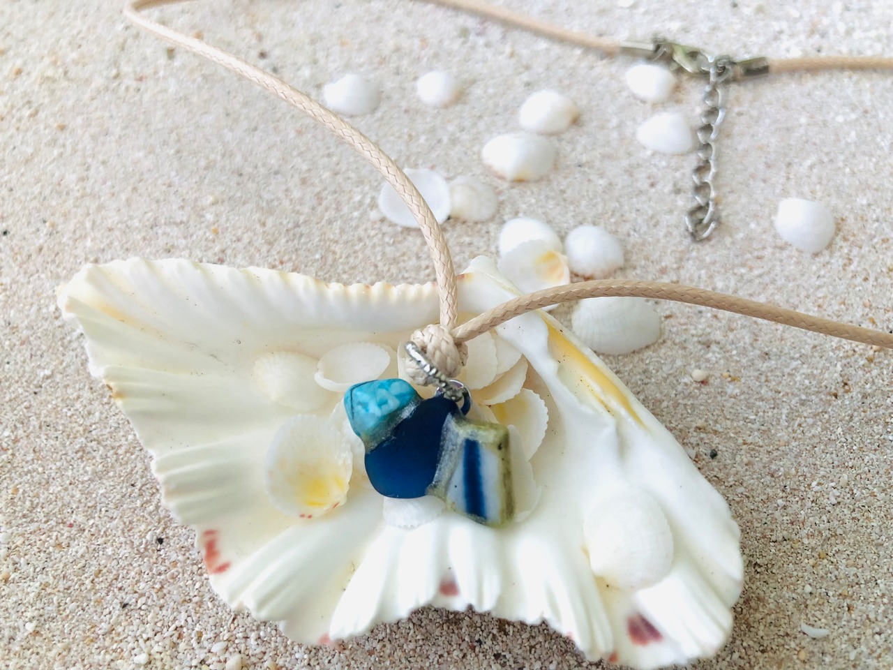 素材: シー陶器、シーグラス、ターコイズ