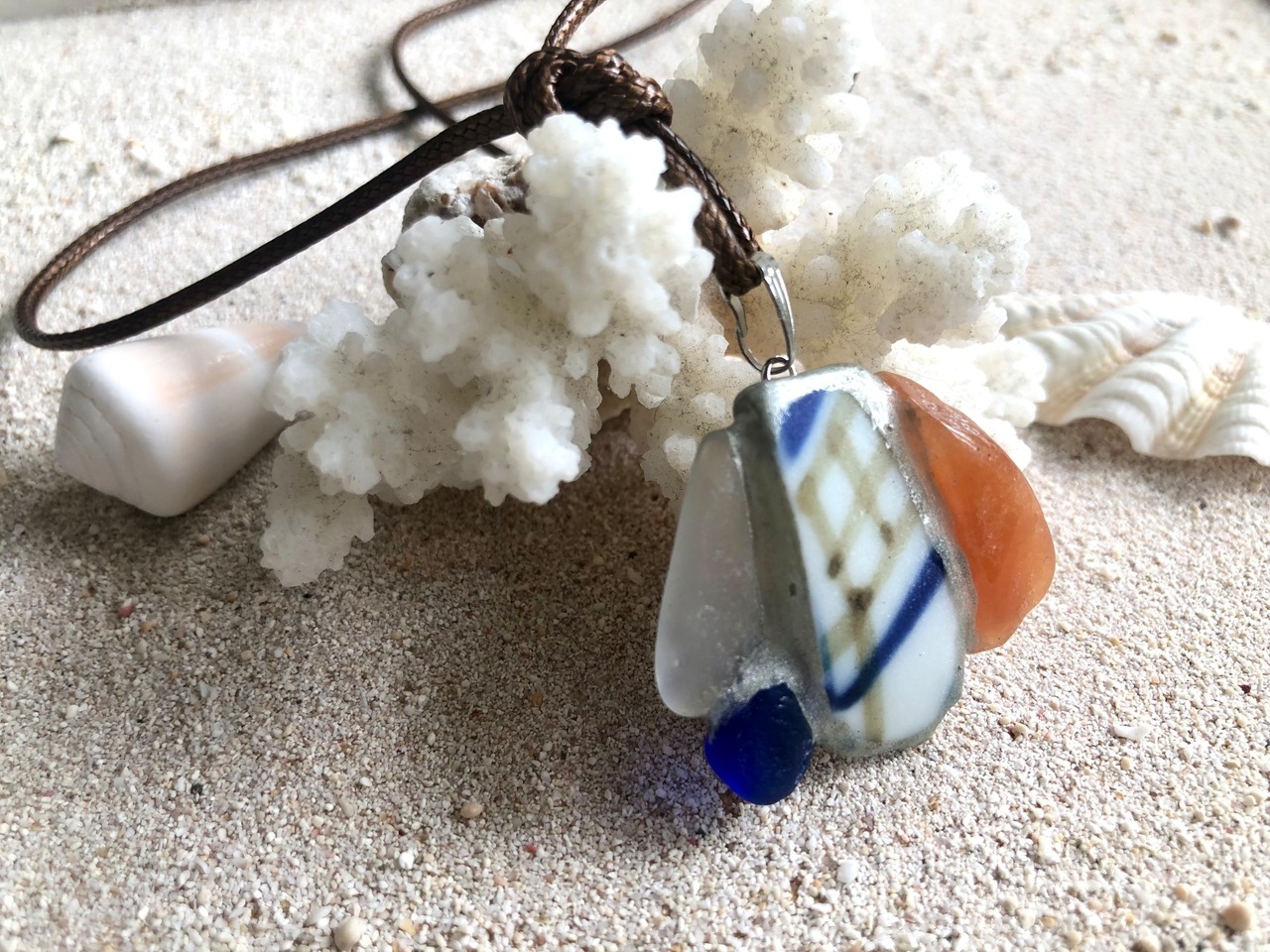 素材: シー陶器、シーグラス、オレンジアベンリュリン