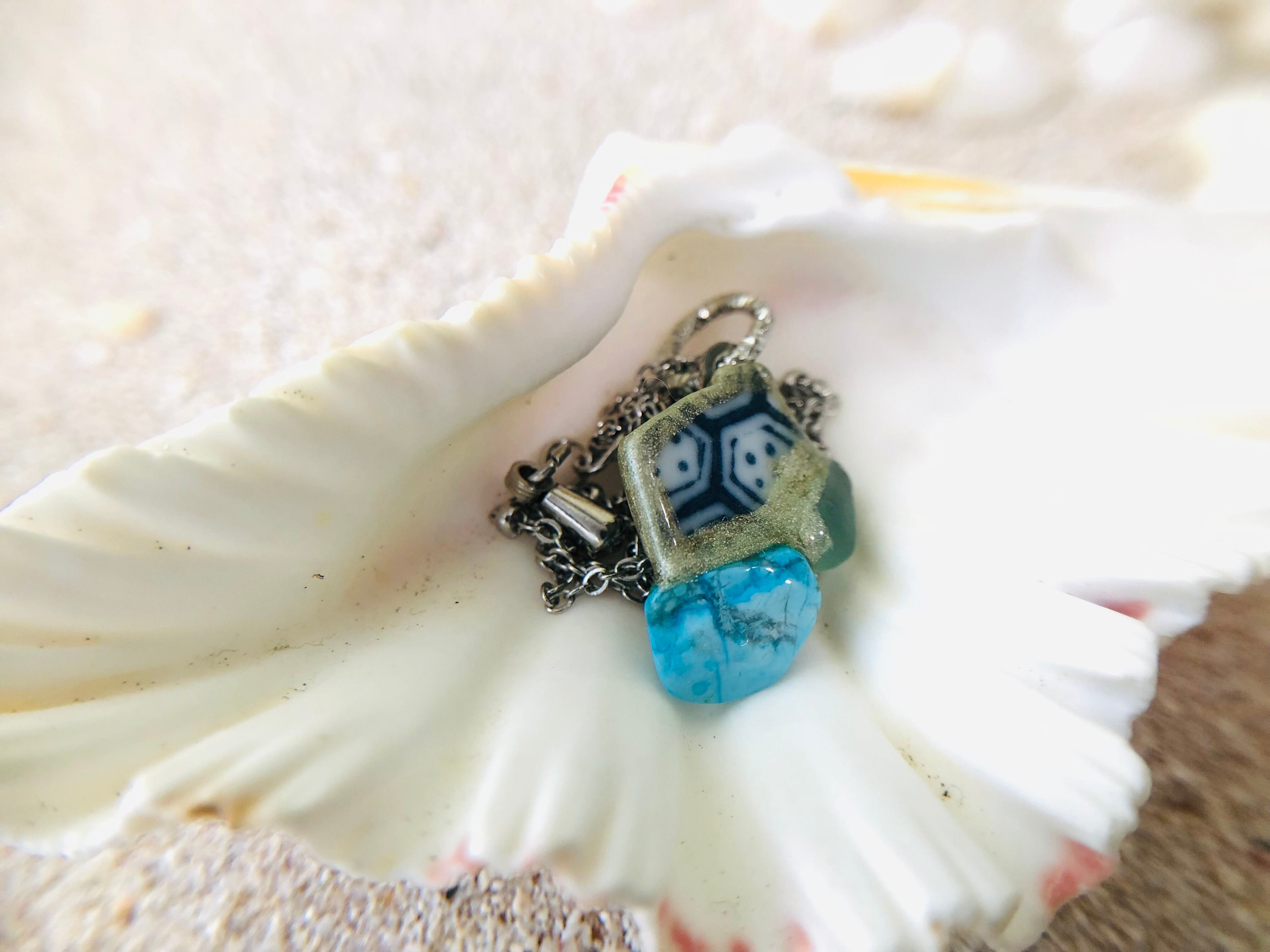 素材: シー陶器、シーグラス、ターコイズ