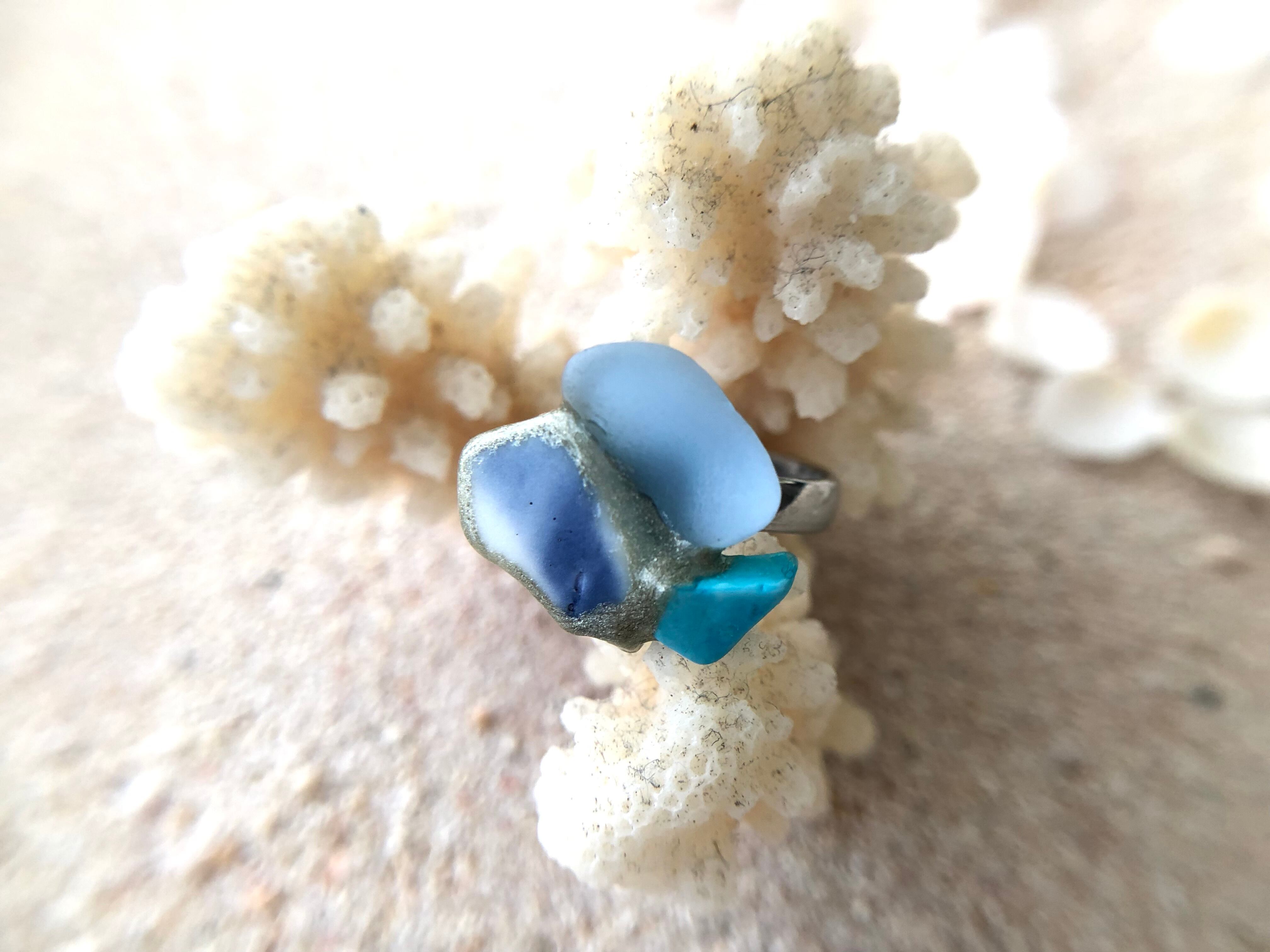 素材: シー陶器、シーグラス、ターコイズ
